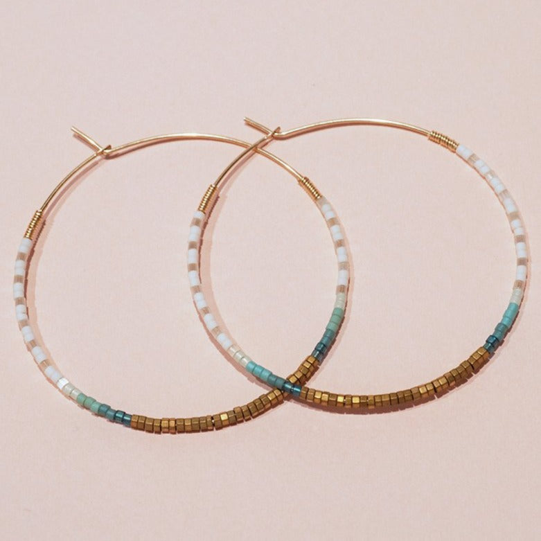SARAH 14K Gold Filled Hematite & Delica® Seed Beads Hoop Earrings